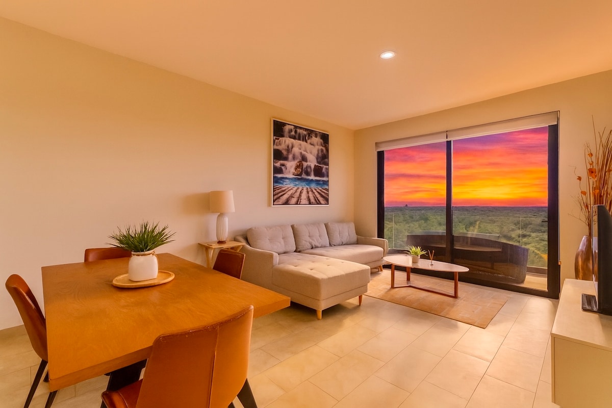 Golf View Retreat in Corasol • Pool & 5 min to Beach Wake up to stunning golf-course views in this modern 2 BR / 2 BA condo inside the exclusive Corasol Resort in Playa del Carmen. Just 5 min drive to the beach and steps from the Gran Coyote Golf Club, it’s the ideal mix of comfort, style, and location.