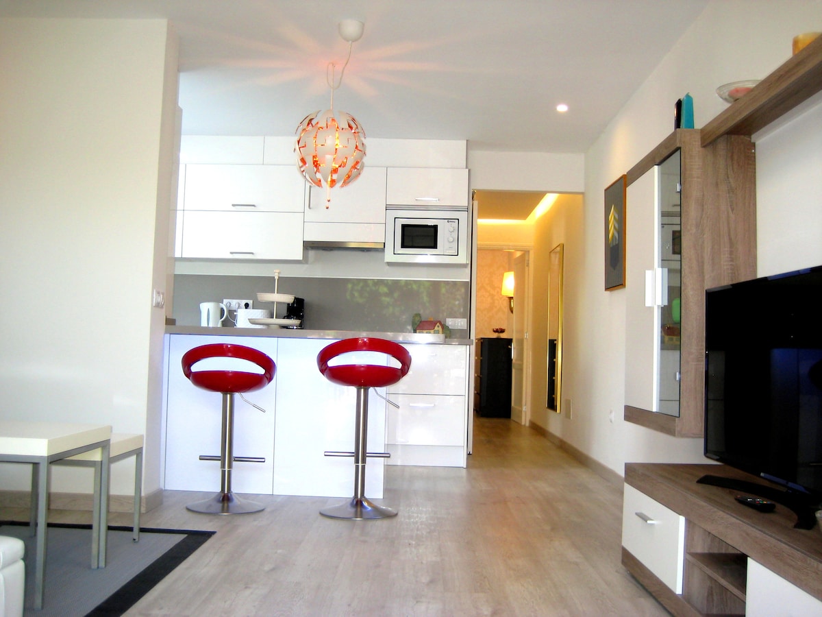 此房源地理位置便利,景色迷人。 一切都很近,步行不到5分鐘即可抵達海灘、超市、餐廳、酒吧、餐廳、商店等! 公寓設備齊全。 大樓提供所有必要的服務, 24小時接待, 2個遊泳池,日光浴室,餐廳和免費WiFi (僅在接待和餐廳) 此公寓為您提供個人化出租車服務。