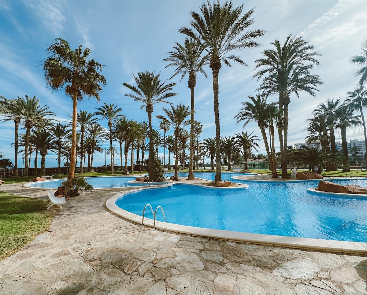 The accommodation is located directly on one of the most beautiful sandy beaches in Alicante between San Juan Playa and Muchavista. In an urbanization with green areas, spacious swimming pools with areas for children and adults, tennis courts and a multi-purpose court as well as an outdoor children's playground. Ideal for families + friends. • The pools are not heated, but are open all year round In the immediate vicinity there are restaurants, supermarket, pharmacy, tram Alicante-Benidorm.