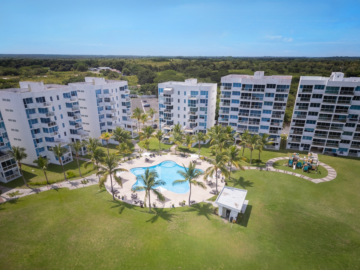 歡迎來到您的Playa Blanca度假勝地! 在這間2BR公寓中放鬆身心,配有度假村式泳池、高速WiFi、冷氣、廚房和陽臺。 距離海灘步行15分鐘即可抵達一個寧靜的度假勝地。 非常適合情侶、家庭或想逃離寒冷的冬季旅客。 長期住宿折扣讓它非常適合在巴拿馬太平洋海岸度假。