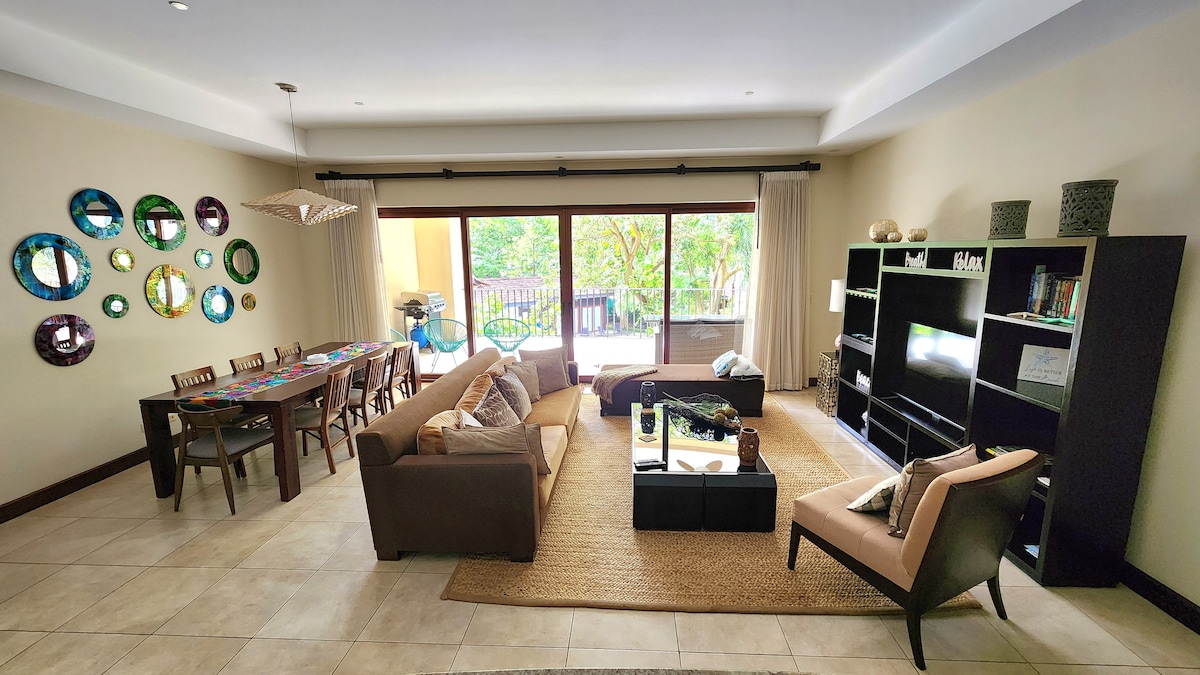 Reserva Condo是一個令人難以置信的度假村!高爾夫球場、美麗的海灘、健身房、水療中心、海濱俱樂部和餐廳!所有便利設施、自行車、獨木舟、海灘上的WiFi、立式槳板!我們的公寓剛剛全面翻新,是全新的!全屋空調、快速WiFi、55吋智慧電視。 兩間臥室均配有特大床,一樓無台階!從陽台直接走到泳池,欣賞日落景觀! 我們的每晚價格非常好,您必須入住Reserva Conchal!
