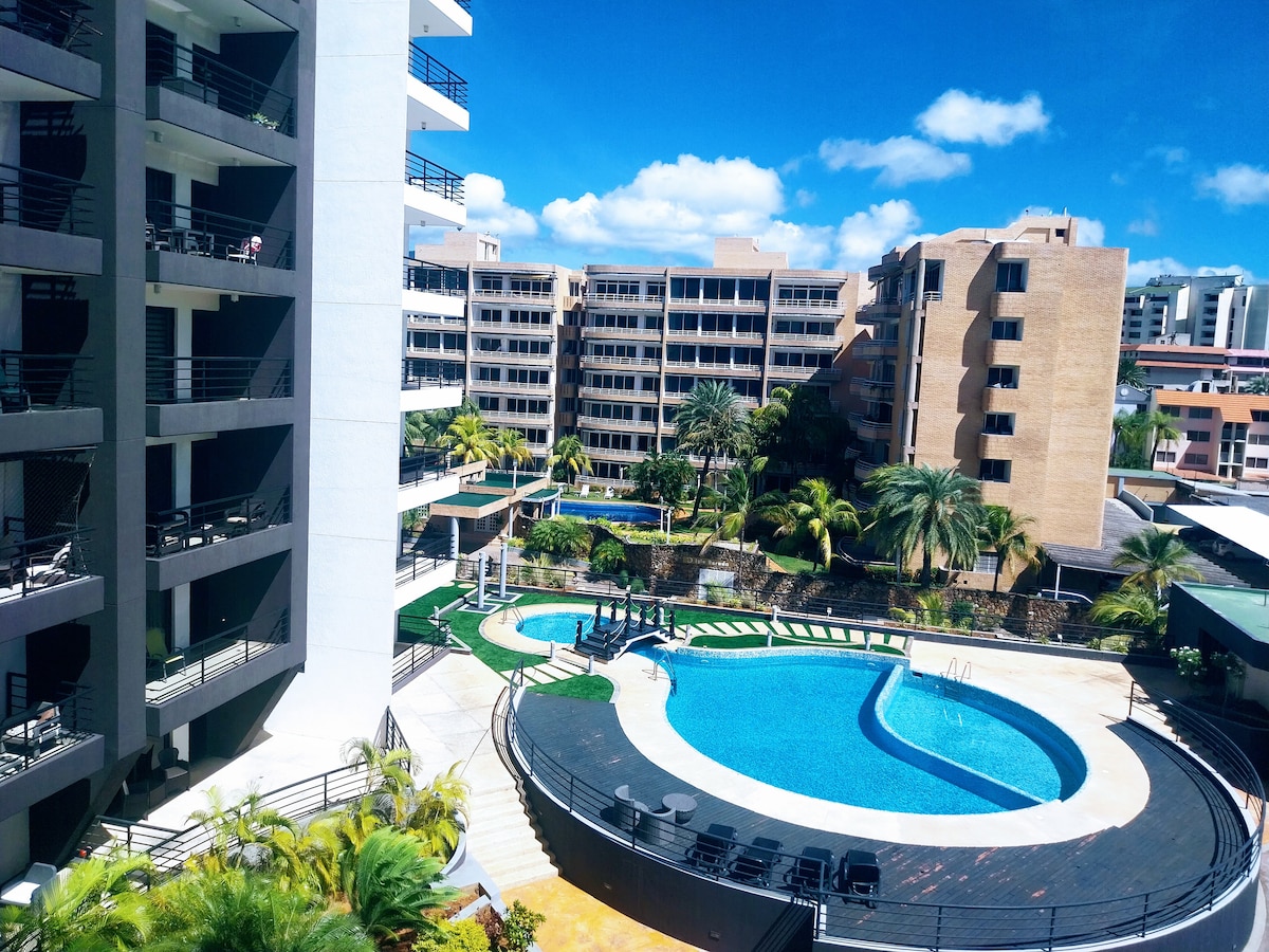 美麗的公寓,可欣賞海景( 5樓) ,有2間臥室和2間浴室,配備島型廚房。 WiFi、空調、暖氣、智慧電視。地理位置優越,步行僅2分鐘即可抵達PAMPATAR海灘,非常靠近標誌性景點,如:La Caranta Fort、Punta Ballena Lighthouse、Salinas de Pampatar、Castillo San Carlos de Borromeo...距離無數餐廳僅幾步之遙,開車僅5分鐘即可抵達C.C SAMBIL。 我們歡迎寵物入住。 我們隨時為你提供協助!