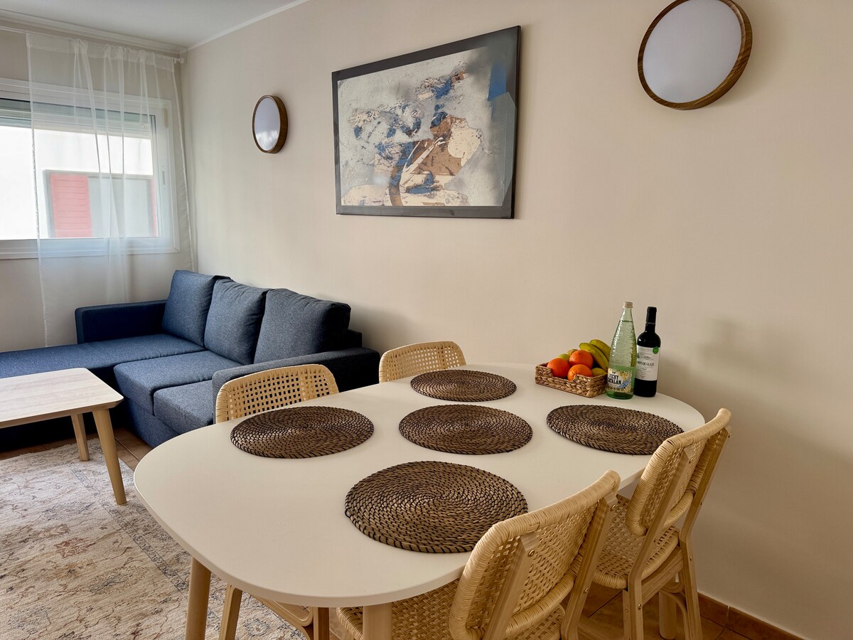 最多可容納3人的公寓,有1間臥室,配有2張單人牀,公共區域配有沙發牀,如有必要,可供嬰兒使用。 設備齊全的廚房。洗衣機、吹風機和熨鬥。 一切你需要一個舒適的住宿。 我們提供毛巾和牀單。 它有社區日光浴室、免費WiFi和衛星頻道。