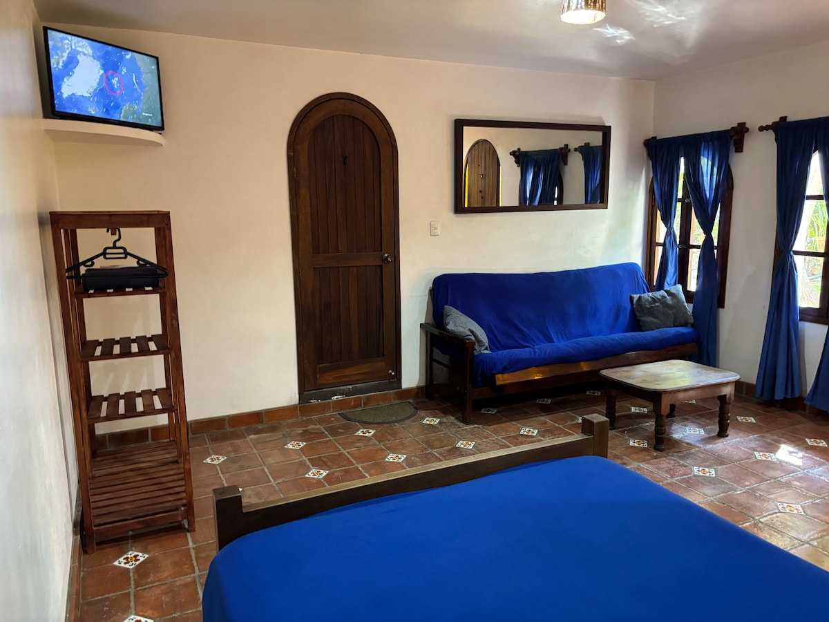 舒適的套房,配有雙人床、智慧電視、冷氣、天花板風扇、廚房、浴室和私人按摩浴缸。 在私人按摩浴缸中欣賞日落,放鬆心情,同時欣賞城市、海洋和山脈的全景。 我們位於Punta Zicatela ,步行7分鐘即可抵達海灘、主要衝浪地點、餐廳、酒吧和購物區。 靠近一切,但遠離派對的喧囂。 我們有Starlink網路。