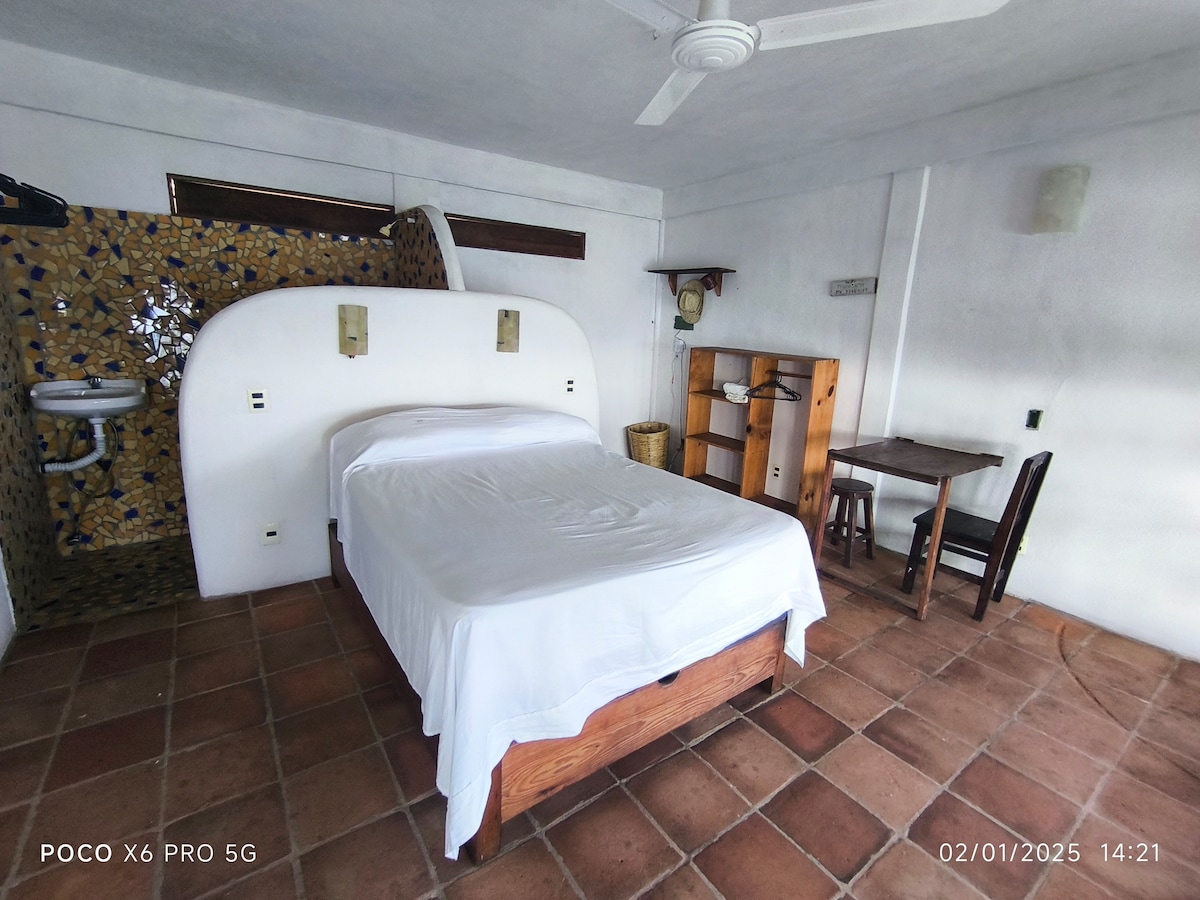 Disfruta de nuestro Loft en la naturaleza de Zipolite y a 8 minutos de la playa. El Loft cuenta con una cómoda cama Queen Size, aire acondicionado, internet Starlink, ventiladores de techo, escritorio, caja fuerte, plancha, una cocina equipada para preparar tus alimentos, un par de butacas, una mesa comedor y en el baño tienes opcion de ducharte con agua caliente. Todo para estar cómodo en una de las playas mas paradisíacas de la costa Oaxaqueña.