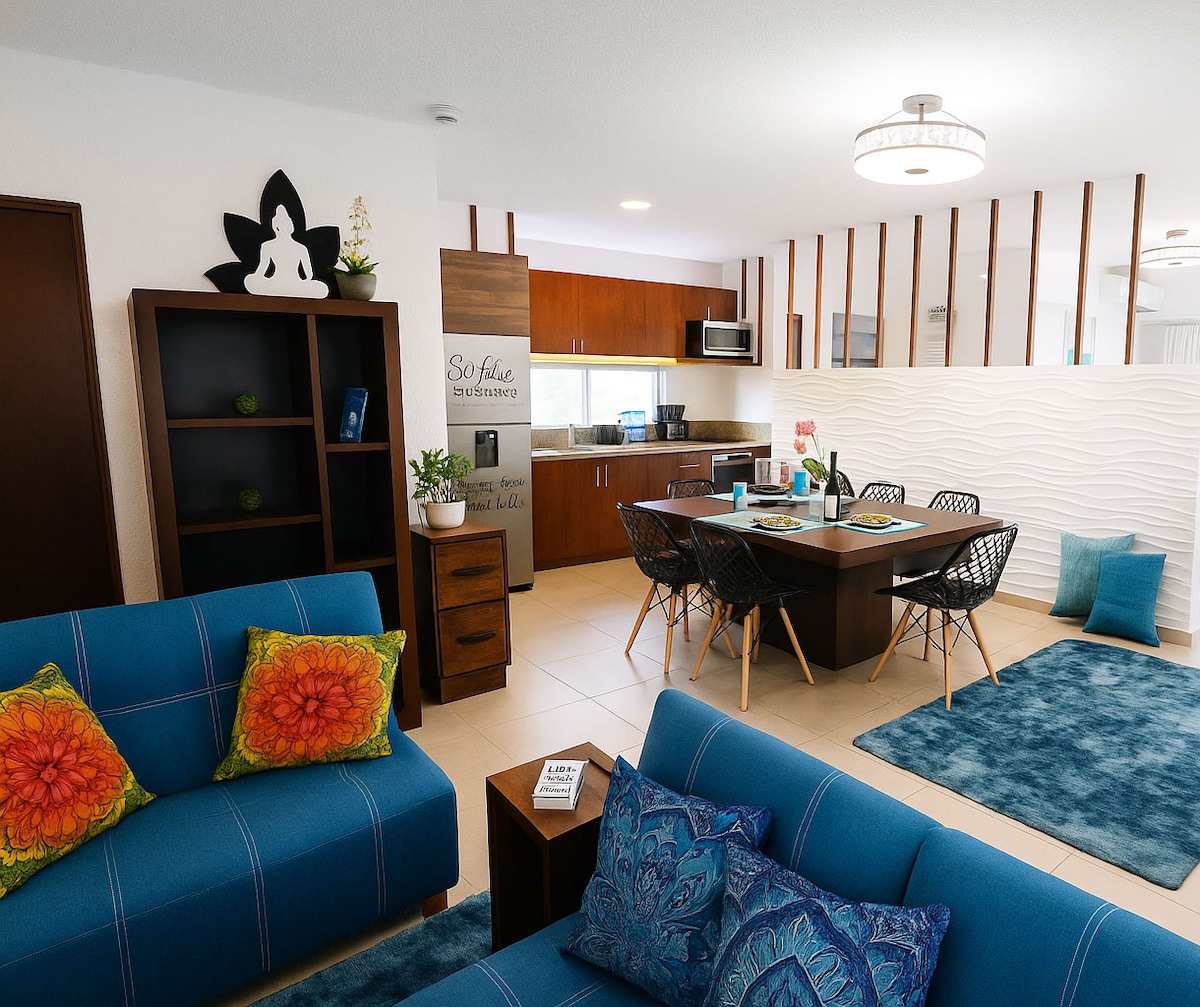 位於普拉亞德爾卡曼的現代舒適閣樓,非常適合放鬆或在家工作。 享受屋頂,可欣賞無邊泳池和綠色景觀,美麗的公共區域配有吊牀,以及在牀邊有陽光的私人露臺。 位於標誌性的拉塞瓦公園( Parque La Ceiba )對面,靠近咖啡館、超市和公共交通工具。 時尚的設計、安靜的氛圍和舒適感,讓您感覺像在家一般舒適。