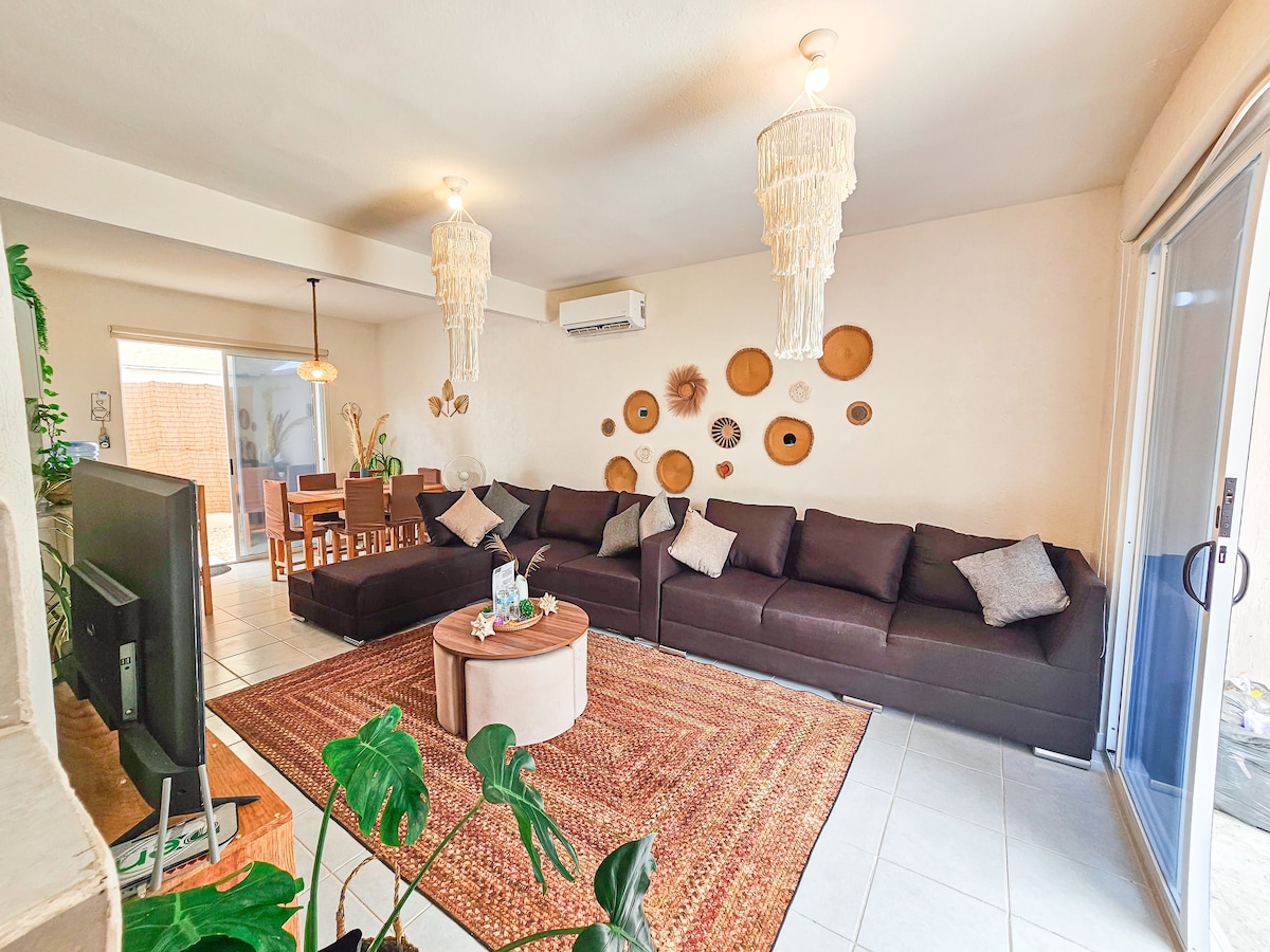 這棟時尚的3臥室、3.5間浴室別墅位於普拉亞卡爾( Playacar )的海濱,步行10分鐘即可抵達普拉亞德爾卡曼( Playa del Carmen )市中心。 Casa Martini提供私人室外泳池、免費Wi-Fi、設備齊全的廚房、洗衣房和免費停車位 Casa Martini設有泳池邊露臺、日光浴躺椅和用餐區。 休息室配有平板有線智慧電視,廚房配有烤麵包機、冰箱、微波爐和咖啡機。