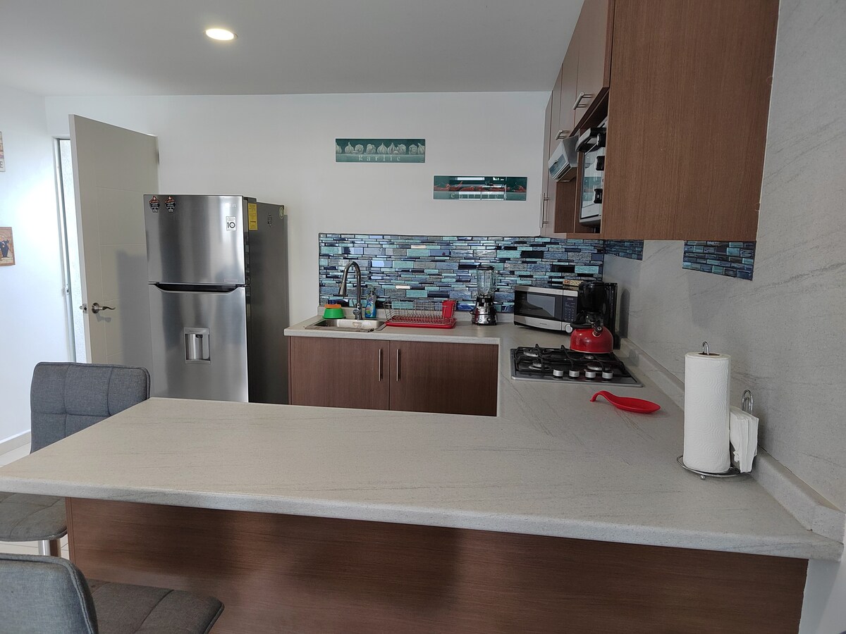 在參觀城市時,在我們的兩房公寓和沙發床上享受舒適的住宿。 此房源提供輕鬆的氛圍,有浴室、廚房、露臺和停車場。 距離瓜達拉哈拉沙灘、動物園、神奇叢林、huentitan峽谷、公峽、獨立廣場5分鐘路程。 靠近哈利斯科體育場、阿克倫、瓜達拉哈拉市中心,距離機場30分鐘。 您還可以找到附近的商店、商店和藥店。