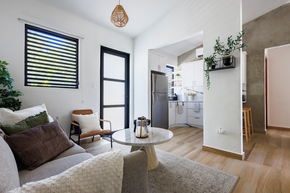 歡迎來到我們明亮而寧靜的房源!在吊床上放鬆身心,在私人陽臺上冥想或做瑜伽。 整套公寓都有設備齊全的廚房、快速WiFi、電視和空調。 開車?別擔心,我們有免費停車位。短途車程,您可以輕鬆探索舊聖胡安、前往海灘或前往機場。 遲到或提前離開?我們的自助入住流程讓您輕鬆無憂。 我們非常期待您體驗我們的舒適度假屋!