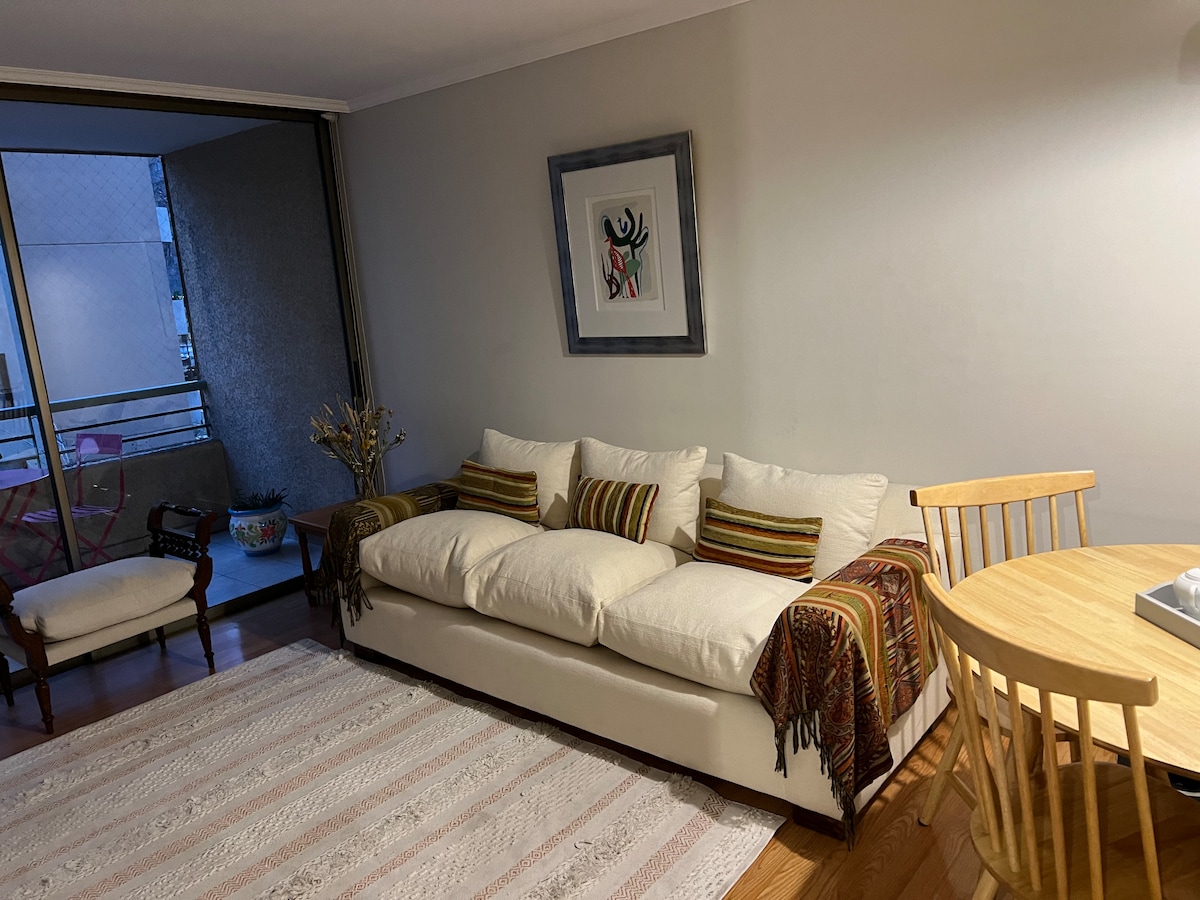 Enjoy a great experience in this save location in Barrio El Golf. Modern and cozy apartment with a privileged location, in the heart of gourmet cuisine and luxury shops of Santiago de Chile "Barrio El Golf". The neighborhood is characterized by its great architectural value and its attractive and varied cultural, gastronomic, and recreational offer. (restaurants, cafes, bars, theaters, museums, design galleries, etc). A few meters away is the metro station ¨Escuela Militar¨ and Plaza Peru.
