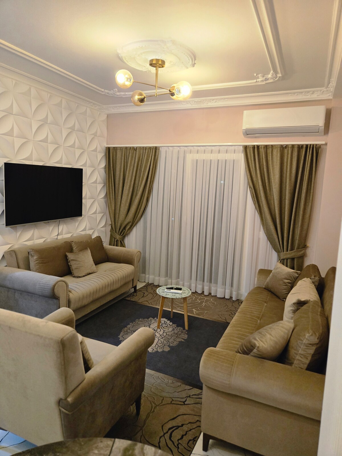 在迷人的Durres小鎮體驗美妙的地中海假期。 新裝修的公寓,美麗的露臺,可欣賞海景。 地理位置完美。步行即可抵達城鎮海灘。附近一切都近在咫尺:市集、老城區、餐廳、海灘、博物館。 此公寓為2樓,包括2間大臥室、大客廳和海景,以及另一個較小的空間,配有小廚房和浴室。 公寓可供4人入住