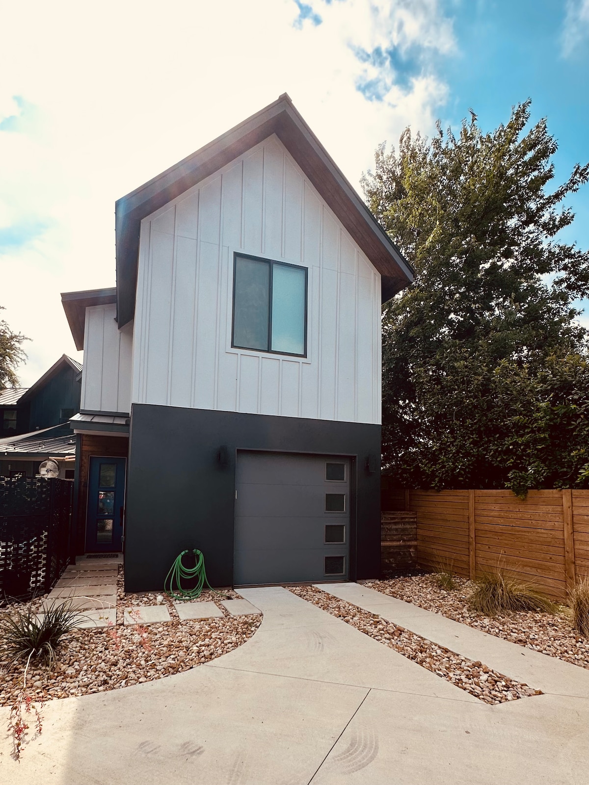 Brand new Swedish modern haven - perfect home base to explore Austin. Walk to downtown and East Side venues, food trucks, bars, shuttles, bike path and Town Lake. Sleeps 4, nice front porch for breakfast and happy hour, wifi, central heat/air, quiet block, washer/dryer. Gorgeous wood interior, sweeping ceilings with a skylight for tree viewing and daydreaming. Private alleyway entrance with dedicated off-street parking space; secure, keypad entry. Many amenities!