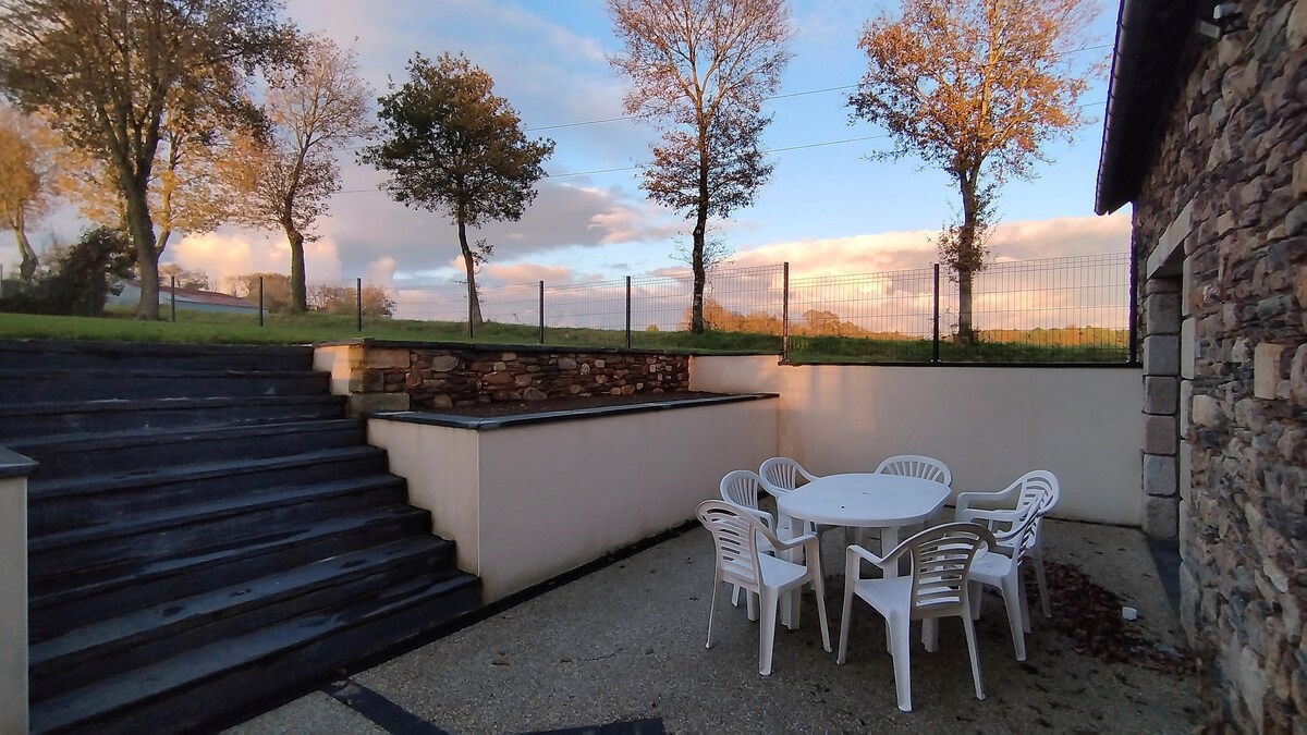Logement indépendant de notre maison principale (en rez-de-jardin) composé d’une pièce de vie lumineuse de 16m2, d’une chambre de 10 m2, d'une salle de bain et WC séparés. La pièce principale donne sur une terrasse indépendante et à l’abri des regards. Situé à 2 pas de la place centrale de Malestroit vous aurez toutes les commodités sans utiliser votre véhicule. Serviettes de toilette disponibles si besoin.
