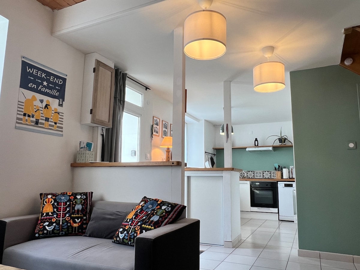 我的住所靠近麵包店(200 公尺)、超市(200 公尺)和海灘(3 公里)。 在小鎮上,位於一個死胡同,您會喜歡這個房子的舒適和安寧。您可以享受 700 平方公尺的封閉式花園,不會被人窺視。 我的住所非常適合家庭入住。孩子們可以玩玩具、閱讀書籍、玩鞦韆和小屋。車庫裡有全家人都可以使用的自行車。