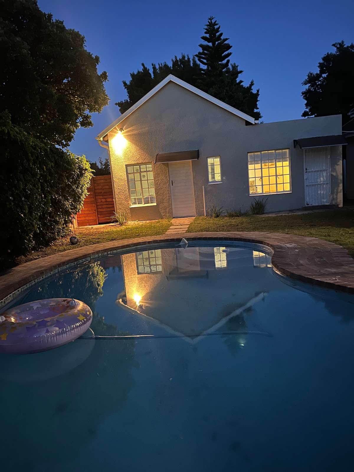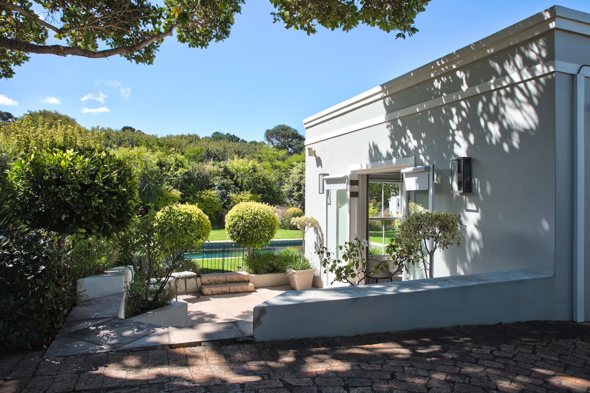 位於綠樹成蔭的花園中的私人安靜自炊式小屋,配有鮮花露臺和有棚停車場。 洗衣房和燒烤設施。 冰箱、微波爐、熱水箱、電磁爐、電磁爐、水壺、烤麵包機、電煎鍋。 碗盤、陶具和廚房用具。 包括網路和衛星電視。 空調和暖氣。浴室配有吹風機和剃須刀插座。 輕鬆前往開普敦,步行即可抵達咖啡店/餐廳、美髮店和美容院。