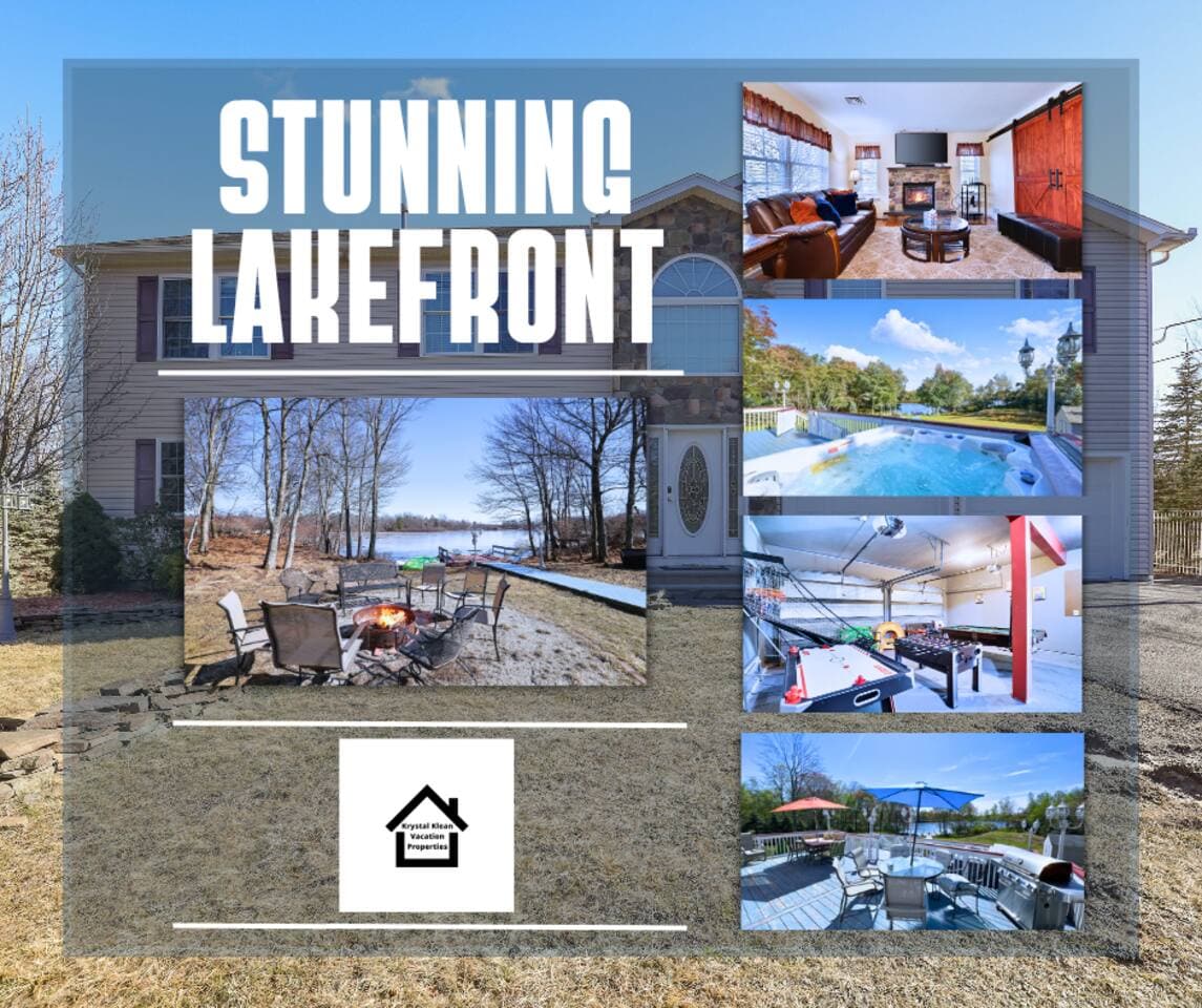 享受... ✩ 湖景和海灘景觀 ✩ 對面有:遊樂場、排球場、籃球場 ✩ 您自己的火坑和木柴 ✩ 床單和毛巾 ✩ 烤肉架和丙烷 配備✩齊全的廚房 ✩ 沐浴乳、洗髮精、護髮乳 ✩ 2 張嬰兒床、高腳椅、嬰兒床、嬰兒背帶、嬰兒浴缸 ✩ 撞球桌、桌上足球和其他遊戲 ✩ 鄰近購物場所、賭場、波科諾賽道 步行2分鐘即可抵達✩釣魚區 ✩ 最多兩個溫馨的瓦斯壁爐-一樓和下層 ✩ 幾分鐘即可抵達Jack Frost & Big Boulder (雪管和滑雪)