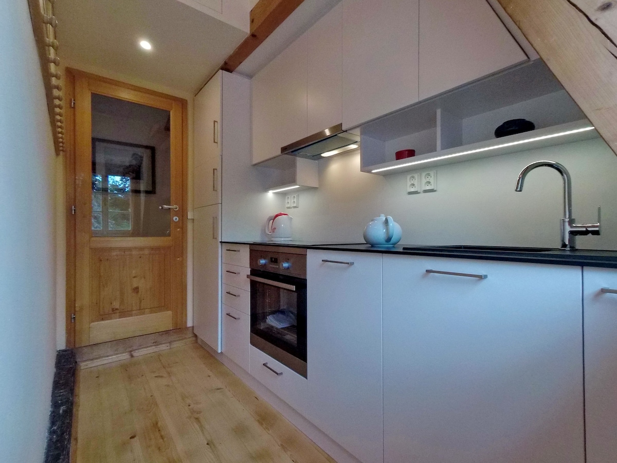入住我們浪漫的舊城區 Loft 公寓,探索布拉格的魅力! 這套迷人的閣樓公寓距離舊城廣場 (Old Town Square) 僅幾步之遙,可供 2-4 位房客舒適入住。 配有標準雙人床、沙發床,以及可俯瞰屋頂景觀的獨立陽台。 在歷史悠久的建築中,享受現代化設備、設備齊全的廚房和高速 Wi-Fi。 非常適合想要來一趟美妙城市度假的情侶或小家庭入住。