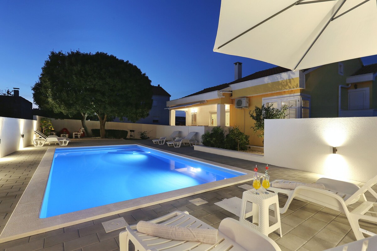 Dasi 別墅是一座現代化的別墅,位於扎達爾市附近的 Podgradina 小鎮。房子的院子裡有一個大型溫水泳池,配有躺椅水池和室外淋浴。廚房通往露臺,露臺上有烤架和休息區,您可以欣賞諾維格拉德海和韋萊比特山的美景。這座房子提供了真正的美好假期機會,您可以在遠離城市喧囂的圍欄區域享受和放鬆。
