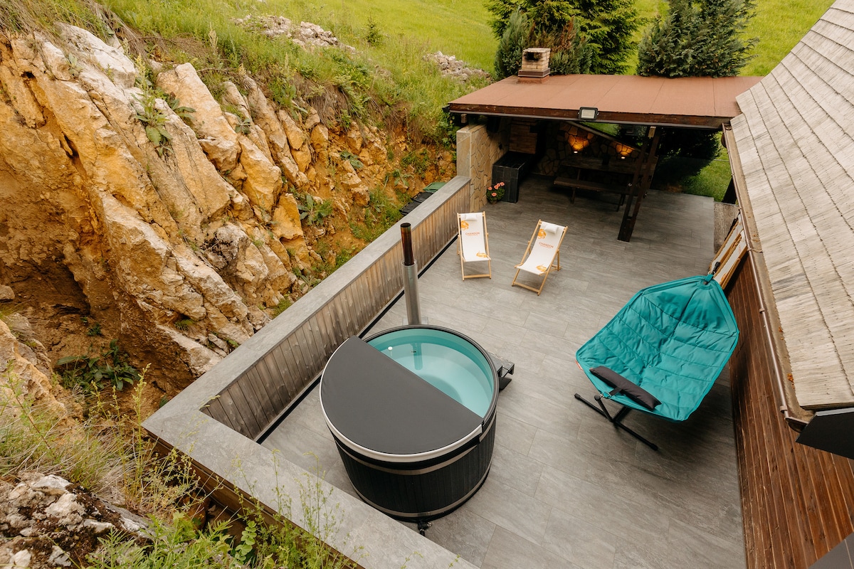 小屋設有美麗的起居區域和設備齊全的廚房,以及壁爐。這裡非常迷人,是享受山景的完美地點。外面有一個美麗的庭院,有戶外露臺和休息區供房客使用,還有烤肉。一條可愛的小溪穿過房源。 這裡還有一個兒童遊樂場、2個吊床、一個鞦韆和一個成人休閒區-按摩浴缸(可應要求額外付費)。這是最適合度假的好地方。