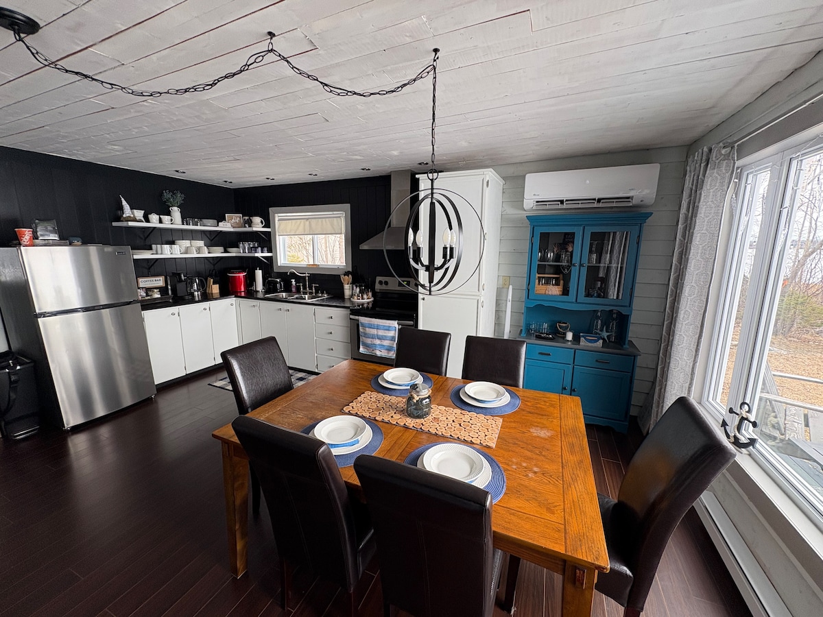在這個安靜、僻靜又時尚的空間中好好放鬆身心。您一定會喜歡美麗的海景和令人驚嘆的日落景觀。提供燒烤、火坑。位於路易斯波特和特威林蓋特之間的中心位置。如果參觀Fogo ,靠近Farewell。距離私人海灘僅幾分鐘。私人車道。