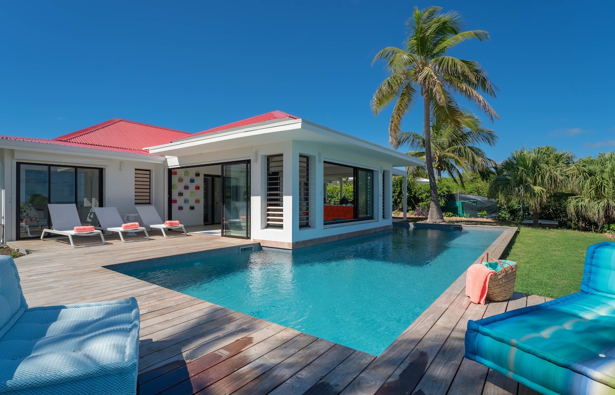 Sakonka 別墅優雅而現代,以其時尚的建築和精緻的家具吸引人。 坐落在聖弗朗索瓦,提供3間空調臥室,包括一間帶獨立衛浴的主套房、明亮的起居空間和一個遮蔭的露臺,可俯瞰一個帶有淹沒海灘的極佳鹽水泳池。 優質的舒適、優質的床單和設備、現代化的廚房:一切都經過深思熟慮,讓您享受非凡的住宿體驗。 靠近海灘、高爾夫球場和碼頭。