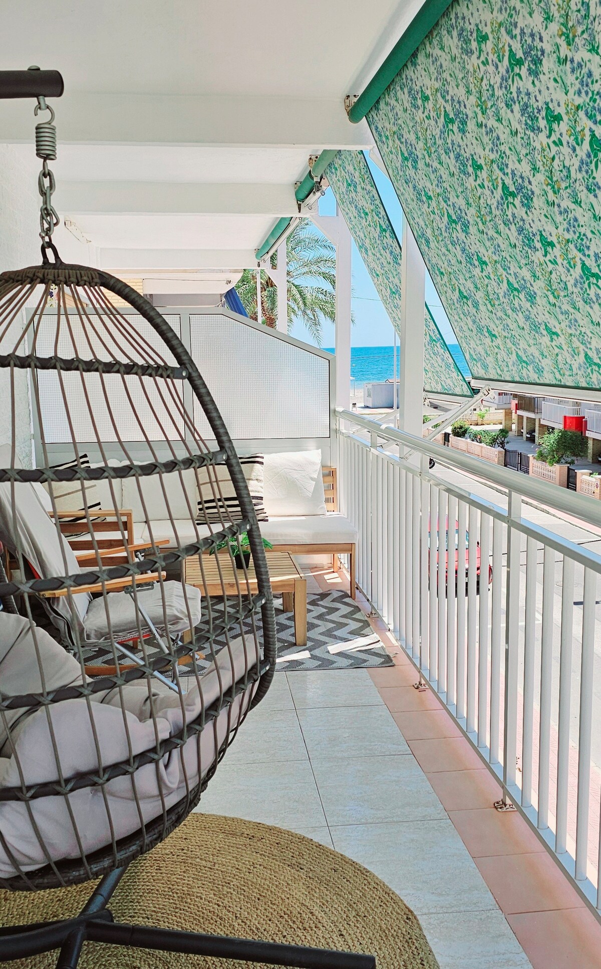 步行1分鐘即可抵達海灘。100%翻新。空調。 可欣賞海景的大露臺、電梯、全新電器、全新家具。 wifi光纖480MB、三星55英寸電視(智慧電視、Netflix、Youtube等)、專業清潔、配有沙發牀的客廳(非常舒適) 1.35、有島嶼的小廚房、1.50有露臺出口的雙人臥室牀。 浴室配有淋浴缸、洗衣機、咖啡機、烤麵包機、微波爐…… 所有設備都在5分鐘內