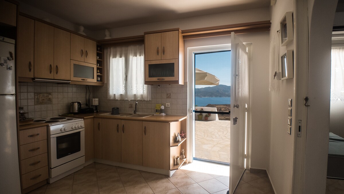 想像一個天堂。擁有迷人的海景、基克拉迪克設計和獨特的現代裝飾。就是這裡了!我們的住宿位於Mandrakia村。距離大海僅50公尺。它包括一間配有一張雙人床的臥室、設備齊全的廚房和一間浴室(配有免費洗漱用品)、智慧電視、空調和Wi-Fi。您可以在露臺上享用美食和飲料,欣賞深藍色愛琴海的壯麗景色。開車5分鐘即可抵達Adamas港口。