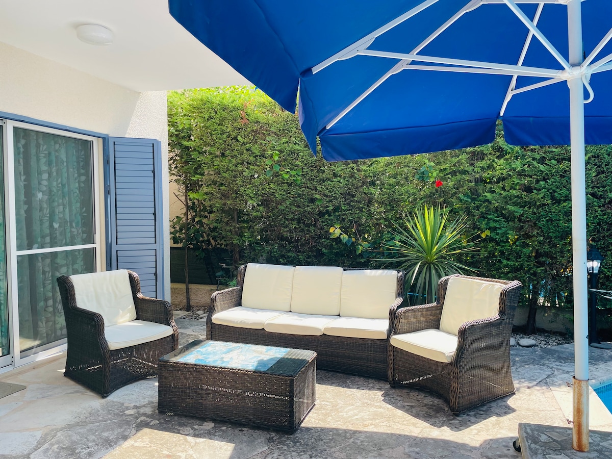 Cocoon villa is a celebration of nature and uniqueness with its contemporary design and attention to detail. Featuring an over-sized kitchen, three bedrooms and three bathrooms and unlimited vistas of the Mediterranean Sea. Located in the famous Coral Bay, just 3min drive to the beach and 5 min to the best shopping, restaurants and bars. The crescendo to the story is the completely private outdoor entertainment pool area, complete with the luxury sun-beds and a fully equipped BBQ/Bar.
