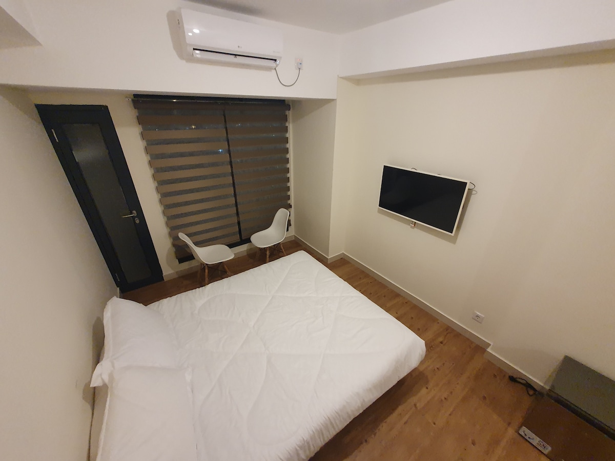 在這個平靜時尚的空間中放鬆身心。 公寓空間: 房間1 (有空調) :主臥室配有加大雙人牀、衣櫃和化妝桌。 俯瞰城市和大海的一部分,是放鬆身心的完美場所。 房間2 (有空調) :這是一間公共臥室,配有1.8公尺寬雙人牀、衣櫃和書桌。 窗戶可俯瞰城市。 公寓配備全套烹飪套裝、洗衣機、冰箱和配備智慧電視的客廳。