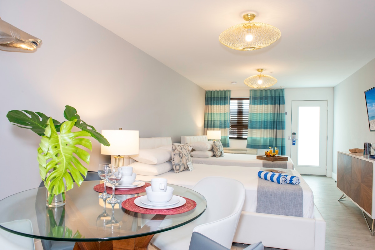 此房源是位於Waterside Hotel & Suites的獨立套房,配有兩張標準雙人牀、小廚房和休息區。 飯店設有遊泳池,距離美麗的海灘步行幾分鐘內即可抵達市中心。 享受優越的地理位置、24小時前臺工作人員、免費使用沙灘毛巾和泳池休息室。 歡迎來高達25磅的狗。 每個房間最多允許兩隻狗。每個房間每個房間收取250 $不可退還的寵物費。 任何時候都必須攜帶狗狗。