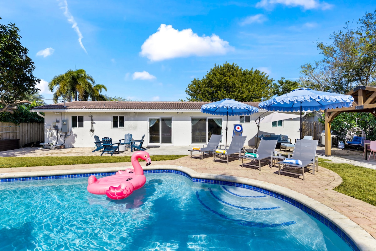 這間豪華乾淨的3床3浴室房源,配有溫水泳池+戶外酒吧+提基小屋!距離勞德代爾堡機場20分鐘車程+距離海灘10分鐘車程!距離10多家餐廳和幾家雜貨店700英尺!我們的房源配備了您所需的一切!設備與服務還包括:免費咖啡吧、設備齊全的廚房、70 吋 4K 智慧電視(可收看 HULU、NETFLIX、免費迪士尼+)、休息室/沙灘椅、舒適、高端的全新 SERTA 枕頭床和全新、優質的家具!