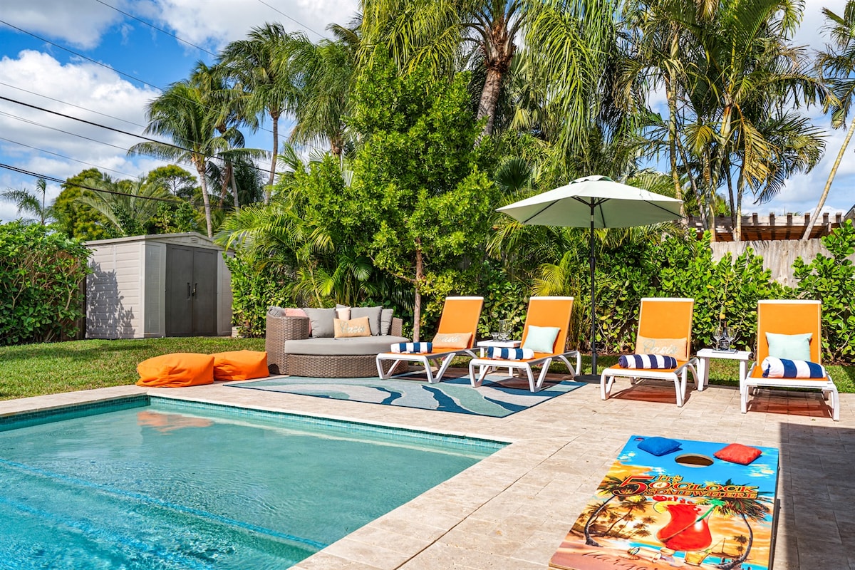 🌴 Guest Favorite on Airbnb! 🌊 Experience Coastal Luxury less than 1 mile from beautiful Pompano Beach! ✨ Newly renovated & stylishly furnished 🚲 Bike or 🚶♀️ walk to the sand 🚌 FREE local shuttle to beach & attractions 🎮 Game room fun for all ages 🔥 Cozy fire pits for evening vibes 🐶 Large fenced backyard ⚓ Peaceful boating neighborhood 🛏 Premium beds + crib for little ones 🍽 Steps to restaurants, shops, pier, boat rentals, dive center & snorkeling