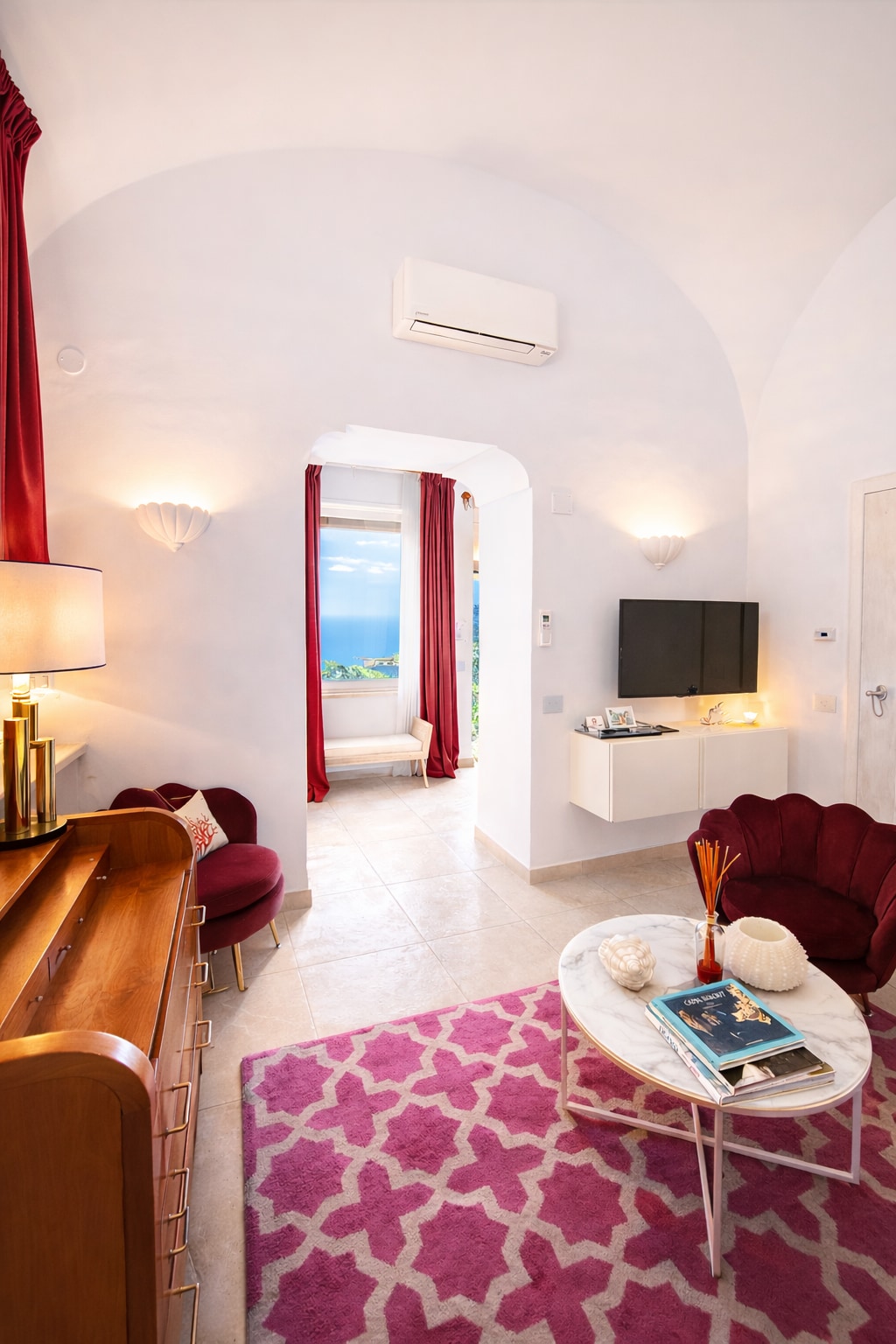 Just 2 minutes walk from the famous Piazzetta di Capri, the nerve center of the island of Capri! Suite "The Sea" is an elegant sea view suite on two levels of 40 m2 with all comforts in the center of Capri, with ancient vaults framing its architecture and contemporary art installations, HD and 4k TV with Netflix access From the splendid terrace you can enjoy the view of the Marina Piccola bay and the famous Piazzetta of Capri, known as the living room of the world!