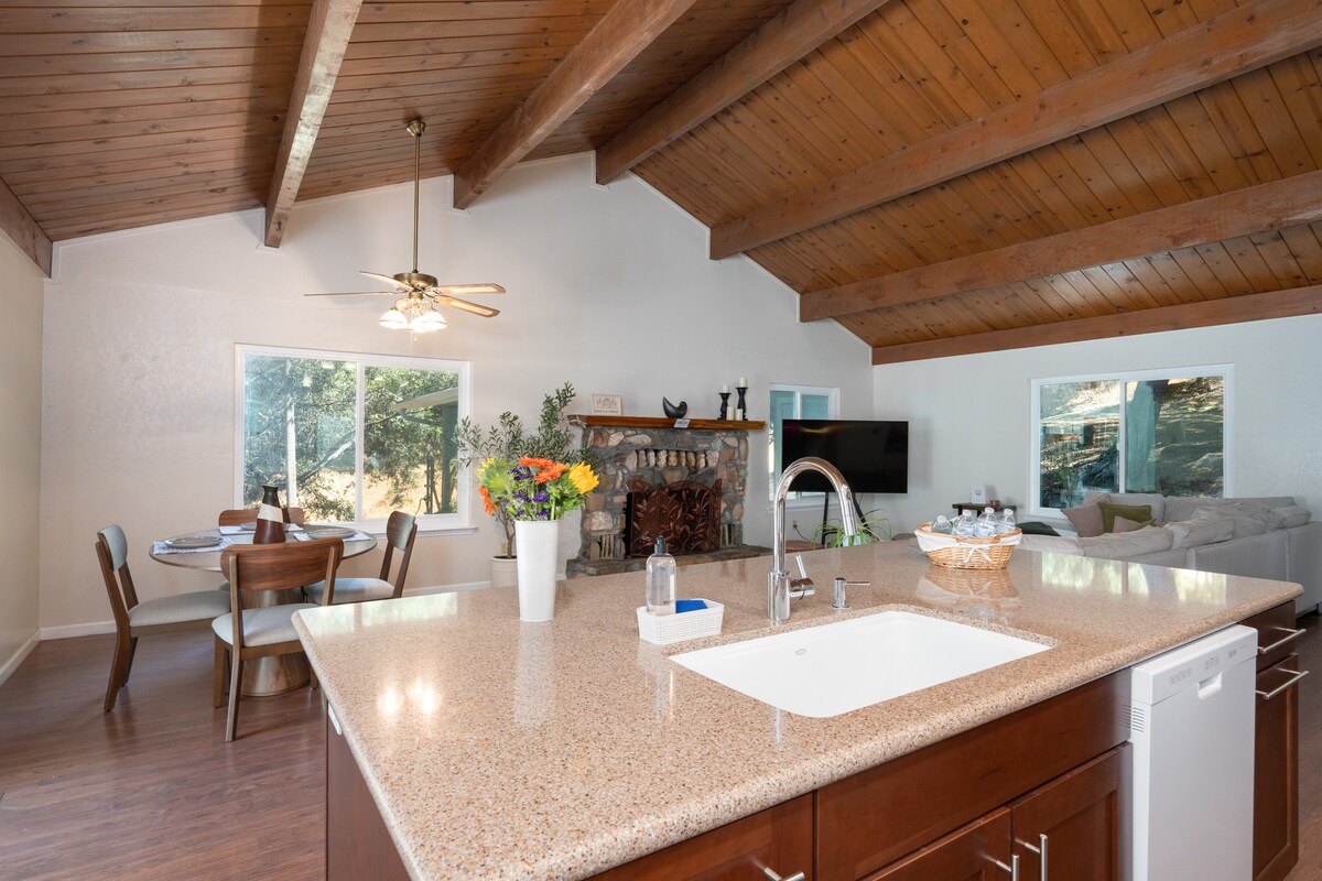 歡迎來到Meadow 's Whisper。從露台上,在有遮蔭的涼亭下放鬆。空氣充滿新鮮。在您的左邊,您會看到禿岩,讓人想起優勝美地谷的壯麗花崗岩山脊,而正前方,松樹像舒適的毯子一樣覆蓋著山脊線。聽著微風穿過樹木的低語,聞著松樹和金銀花的味道。室內有設備齊全的廚房,還有 3 間臥室和 2 間浴室,讓您盡情享受遊戲之夜。距離約塞米蒂國家公園僅一小時車程。