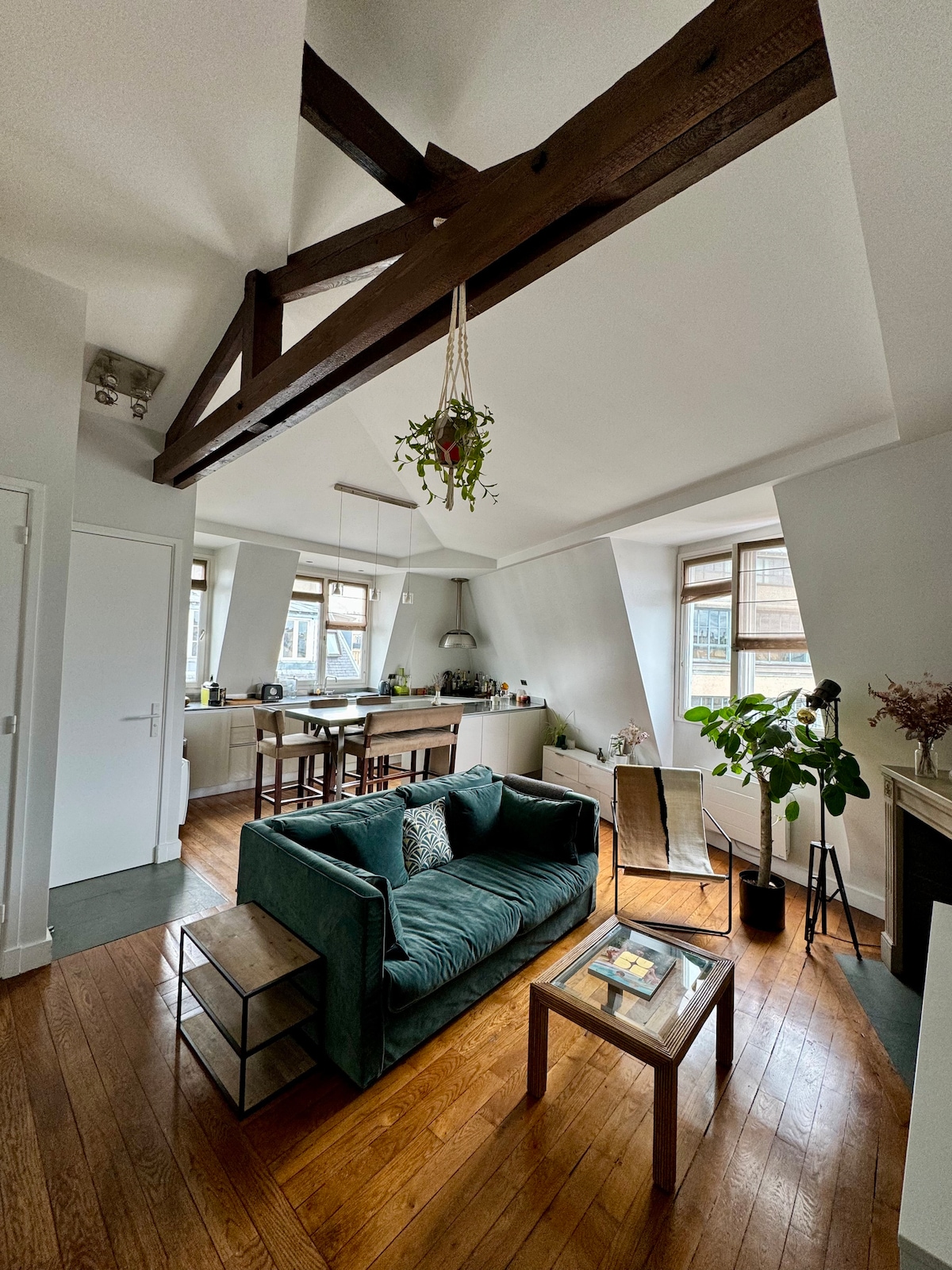 這間寬敞的1間臥室公寓位於巴黎最理想的街區之一的17世紀拉丁區大樓。距離塞納河、浪漫的河岸、歷史悠久的咖啡廳、商店、餐廳和紀念碑僅幾步之遙,兩個風景如畫的庭院將它與喧囂安靜地隔開。靠近許多吸引您來到巴黎的景點。其高木樑天花板和落地窗,讓它成為一個明亮、通風、安靜的休息場所。