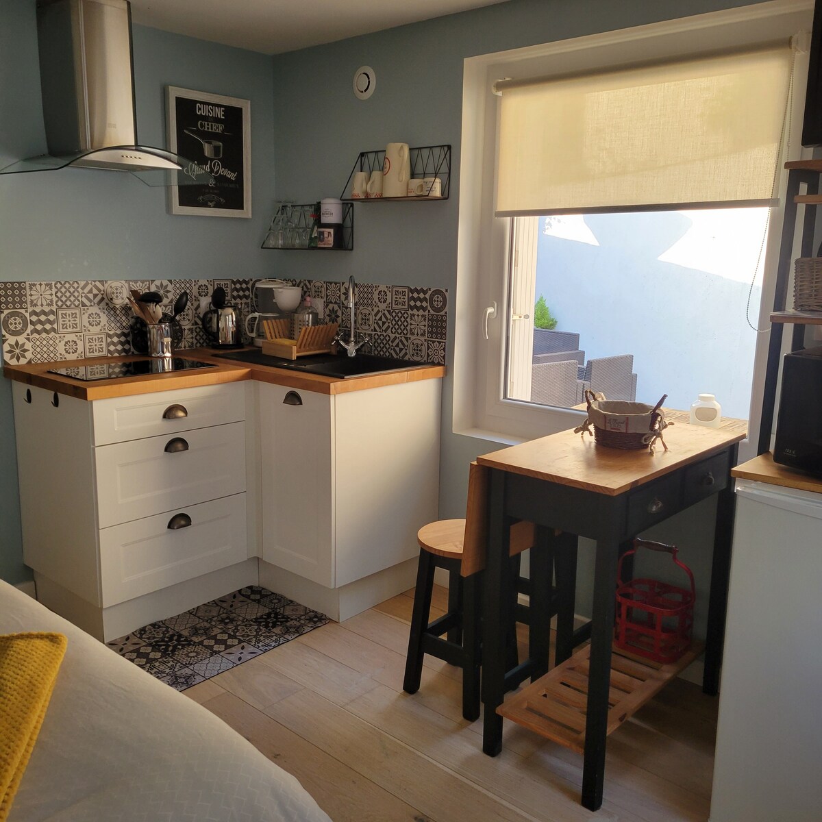 22 平方公尺全新單間公寓 獨立通道,可從房子後面的樓梯進出 設備齊全的無菸住宿:小廚房、浴室、優質的 BZ 床上用品 我們的貓可以進出花園,因此我們無法接受其他動物 可使用共用庭院和花園,不會被對面窺視 距離斯科夫河 (Scorff) 徒步道和河岸 50 公尺 距離商店900公尺,距離洛里昂15分鐘,距離海灘20分鐘 期待您的光臨,祝您住宿愉快!!