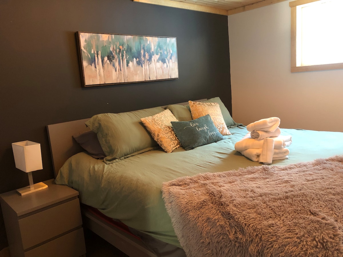 現代化的 2 間臥室,配有皇后床,位於安靜的區域,距離渥太華 10 分鐘。距離加蒂諾公園 (Parc de la Gatineau) 10 分鐘,靠近巴士站、自行車道、購物中心、Costco 和餐廳。 地下室有私人空間,獨立入口,有數字密碼。包括:1 輛車的停車位、高速光纖 Wi-Fi、智慧電視、辦公桌。