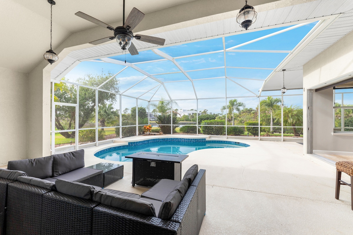 大型溫水泳池是私人泳池,與鄰居分開。 從中午到日落,泳池上陽光充足。 有遮蔽的陽台可避免陽光照射。 在孩子們游泳和玩耍時,在室外電視上觀看足球和燒烤。 享受美麗的日落,俯瞰寧靜的公園般的環境。 步行高爾夫球車小徑、做日光浴、閱讀書籍、播放音樂、品嚐熱帶飲料,並讓您的所有煩惱消失。 在外面喝杯晨間咖啡,聆聽鳥兒的歌聲。 戶外生活就是這裡的一切。