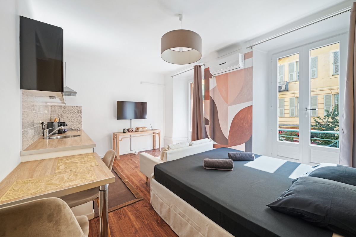 可愛的公寓,有陽臺,距離舊尼斯10分鐘