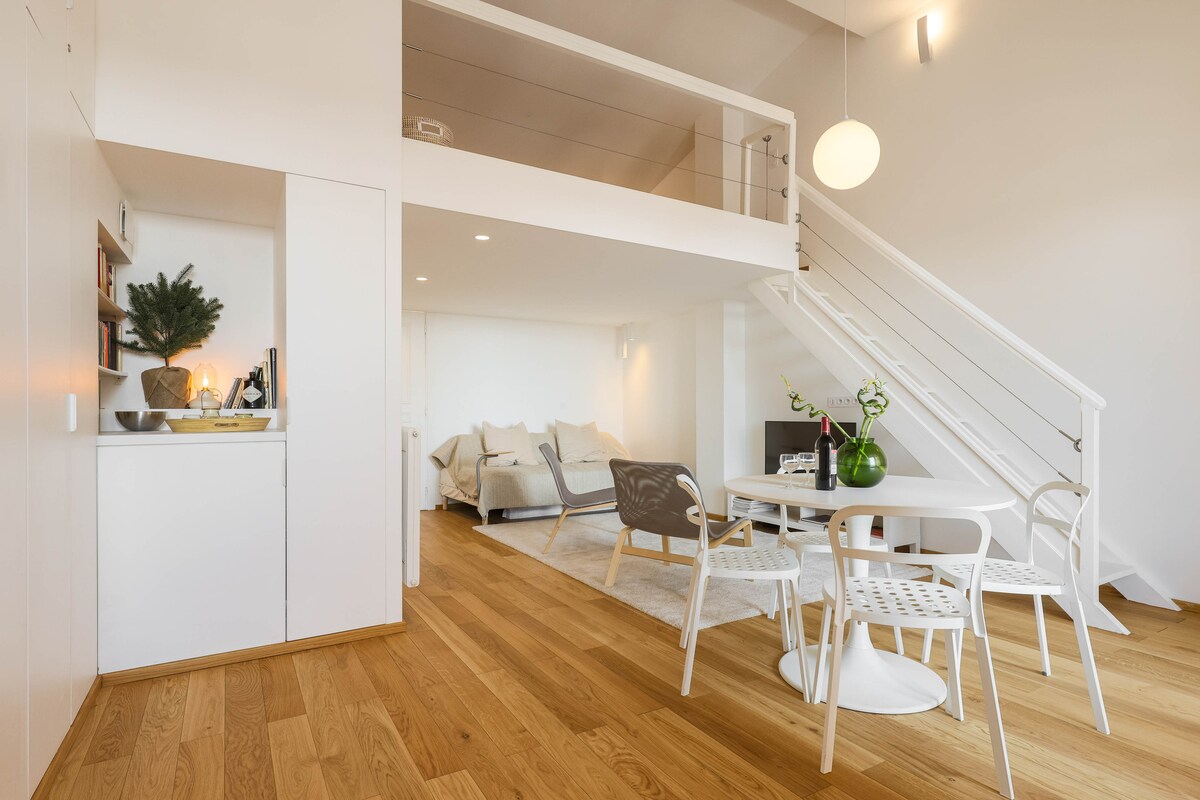 Very bright and cozy loft nested on last (6th US) floor with a lift in an historic building (with a lift) just a stone-throw from the Old Harbor. The unit is oriented East and offers unobstructed views on the Old Harbor, Cap de Nice and the sea that you can enjoy from the patio, the sofa, the dining table or even your bed. The location can't be better - beaches, La Promenade, Old Town and all amenities are just 5 min walk. The unit is accessible from the airport with Tram Line 2.