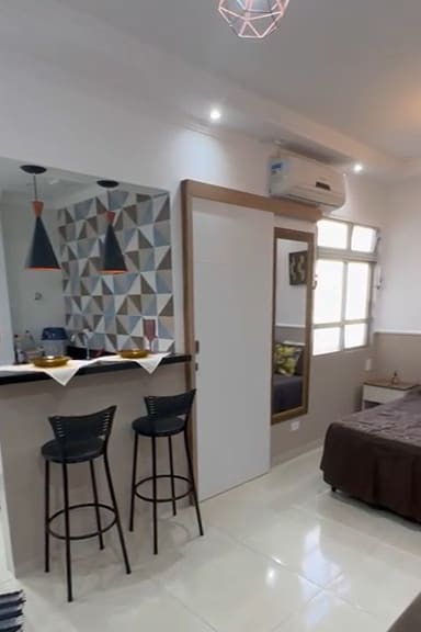 This 55m² apartment is ideal for couples and executives on business trips. It has everything you'd expect from an apartment: practicality and technology. For those coming to spend New Year's Eve in Santos, you can enjoy the festivities without even leaving the building. From the pool area, you can enjoy the sea view, the fireworks, and the city's festive atmosphere without having to deal with traffic, crowds, or a tiring commute after the fireworks.