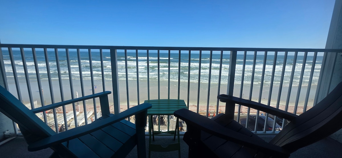 歡迎來到我們位於佛羅里達州代托納海灘的海濱套房,可欣賞迷人的海景,距離迷人的餐廳和酒吧、星巴克、CVS、購物、娛樂等僅幾步之遙!如果您覺得冒險,對面還有一個名為海盜島(Pirate Island)的迷你高爾夫球場。 我們提供海盜灣停車場的停車證,方便您使用。 從私人陽臺上欣賞壯麗的海景和令人驚嘆的日落景色。我們的海濱套房可直達海灘!