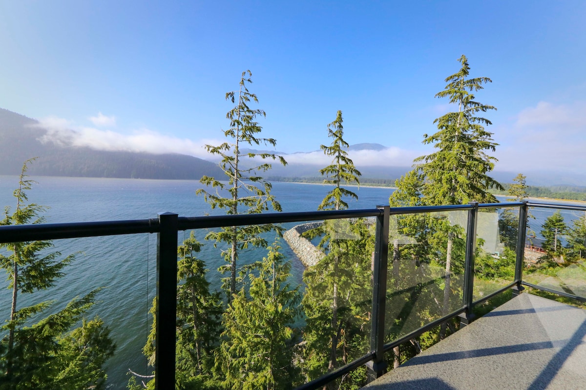 從我們的現代海濱度假屋欣賞壯麗的景色,距離海洋僅幾步之遙! 這是一個全新的、家具齊全的、2 間臥室現代度假屋,位於倫弗魯港(溫哥華島西南海岸) 這是完美的小屋,適合住宿、家庭度假、家庭團聚或與朋友一起入住! !