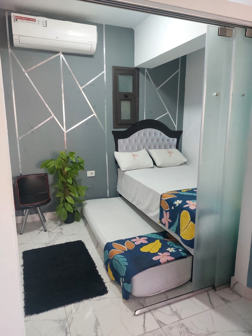 Very clean stylish comfortable apartment with all you need in one place the air conditioned comfortable master bedroom is very comfortable wide containing 1 bathroom , 1 bed and 1 sofa bed sleeps 2 adults and 2 kids with a spectacular view of the sea Outside air conditioned area with pool view balcony is modern & comfortable containing a dining table ,Tv & satellite and 2 sofa beds that sleep up to another 4 adults with another bathroom and kitchenette that contains all utilities you need