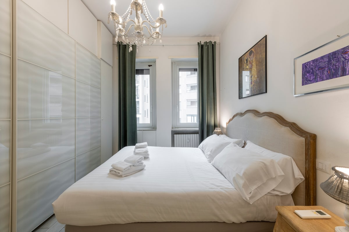 In the heart of Brera, few steps from Piazza Gae Aulenti, home to the Vertical Forest, close to fashion street Monte Napoleone, the Milanese shopping area, we offer this beautiful typical apartment. Two bedrooms with bathroom in suite, large living room overlooking Santa Maria Incoronata church, fully equipped kitchen with all comforts and large dining area. Fast WI-FI, Smart TV, confortable working area, air conditioning, even medium-long periods