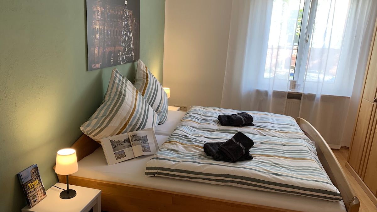 Genieße unsere stilvolle, gemütliche Wohnung in zentraler Lage. Triers schönste Straße liegt gleich ums Eck-hier findest du leckere Restaurants u einzigartige Shops & Boutiquen. Stadttheater, Porta Nigra, Barbara-u. Viehmarktthermen, Amphietheater, Basilika u Römerbrücke sind in wenigen Minuten zu Fuß erreichbar. Kaiserthermen mit dem wunderschönen Palastgarten sind gleich um die Ecke. Beste Base für kulinarische, kulturelle Ausflüge&Shoppingtouren. Als WorkSpace hervorragend geeignet #workation
