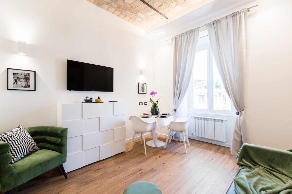 位於特拉斯提弗列歷史建築三樓的設計公寓。 公寓配有1間臥室、1間帶步入式淋浴間的浴室、寬敞的客廳和配有烤箱和洗碗機的島式廚房。俯瞰台伯河,欣賞維托里亞諾紀念堂的景色。 與整個城市的交通非常便利,是參觀附近的威尼斯廣場、羅馬競技場、羅馬廣場、台伯島、真理之口、國會大樓、猶太區以及享受羅馬特色街區的理想之選。