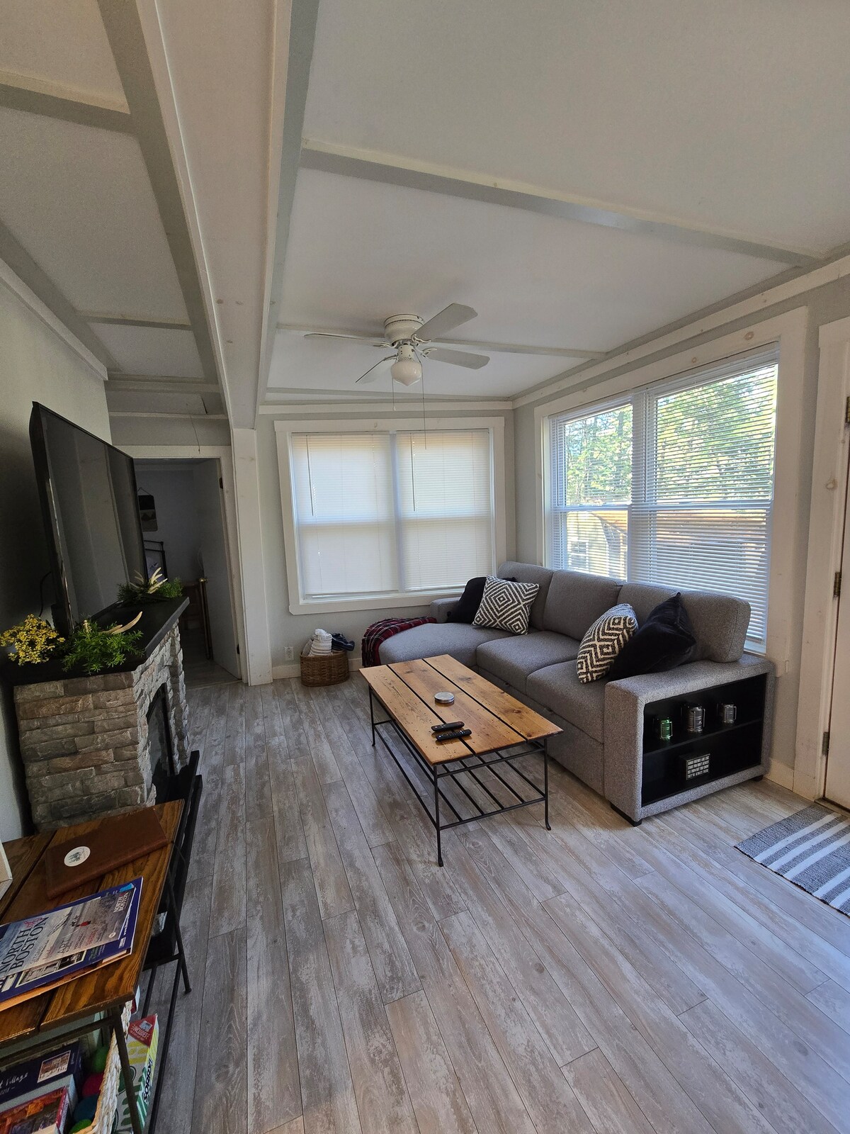 無論季節如何,Birch Ledge Guest House都能提供舒適的地方放鬆身心,充電。 一樓設有寬敞的客廳(配有標準雙人床尺寸的拉出式沙發)、用餐區域和小廚房。 浴室內有步入式淋浴間。二樓是一個閣樓,可通過螺旋樓梯進入,並有一張舒適的雙人床和兩張雙人床。 客用住房四周環繞著安靜的森林,開車前往波特蘭需30分鐘。