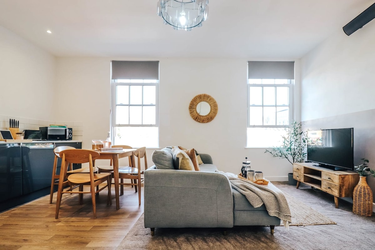 歡迎來到Solace Stays的Principality View Two ,位於卡迪夫市中心海濱大樓一樓,就在Principality Stadium對面。 免費使用附近的健身房,以保持您的健身習慣(步行8分鐘)。 Wi-Fi 速度快,地理位置優越,距離火車站僅幾步之遙,靠近所有熱門景點。 Principality View是您在卡迪夫住宿的完美基地!