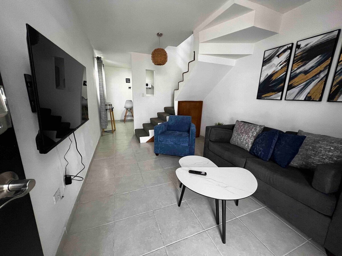 聖塔菲區的兩房公寓(景觀美麗)。裝潢精美,設備齊全,提供 Netflix、WiFi 和有線電視。位於一個適度、簡單且安靜的區域,距離購物中心約 1.5 公里。附近有電影院、餐廳和酒吧。這不是旅遊區,但距離公寓約 50 公尺處有 24 小時公共交通工具前往市中心。距離邊境約 25 分鐘車程,距離羅薩里托市中心約 15 分鐘車程。